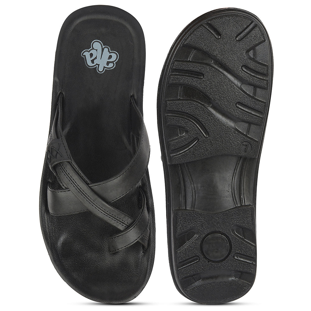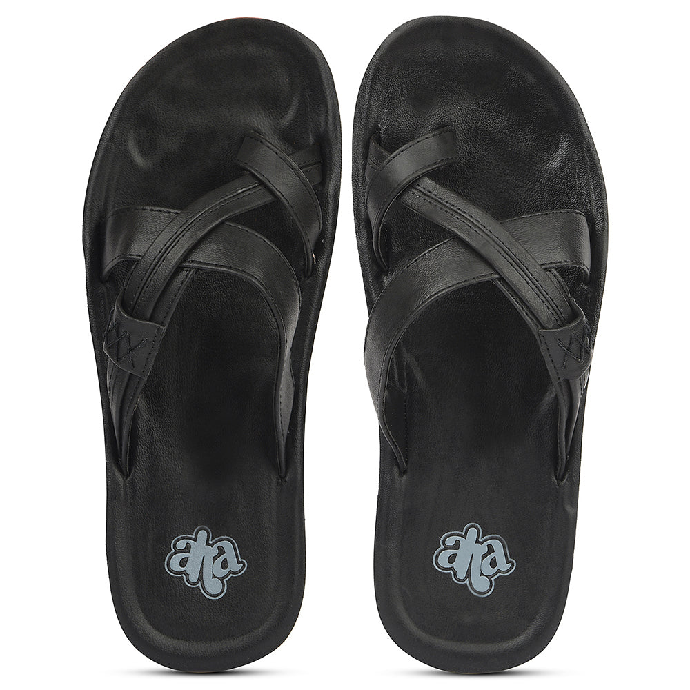A-HA Black Casual Flat Sandal For Men MPU-60 By Liberty