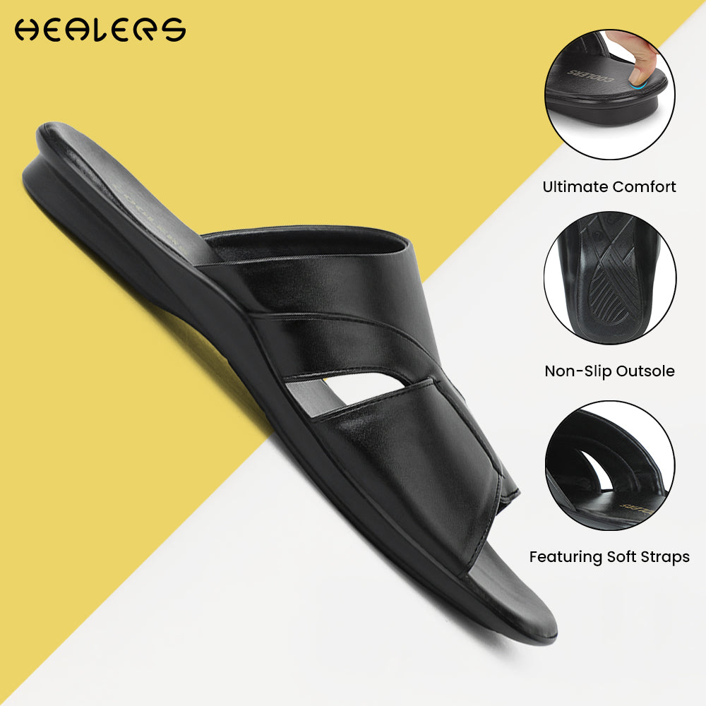 Coolers Black Casual Slipper For Men WAKAFIT-1E By Liberty
