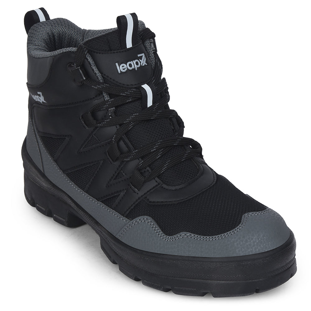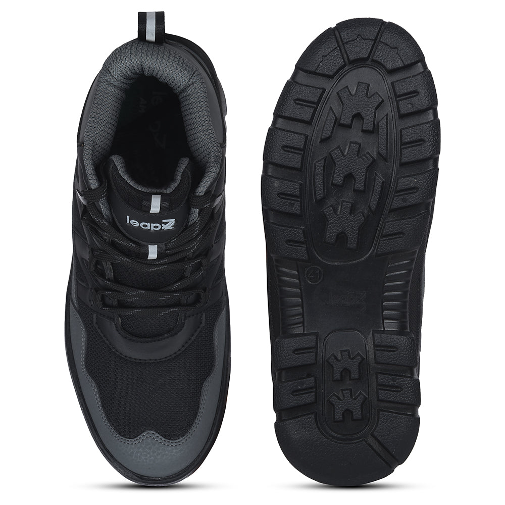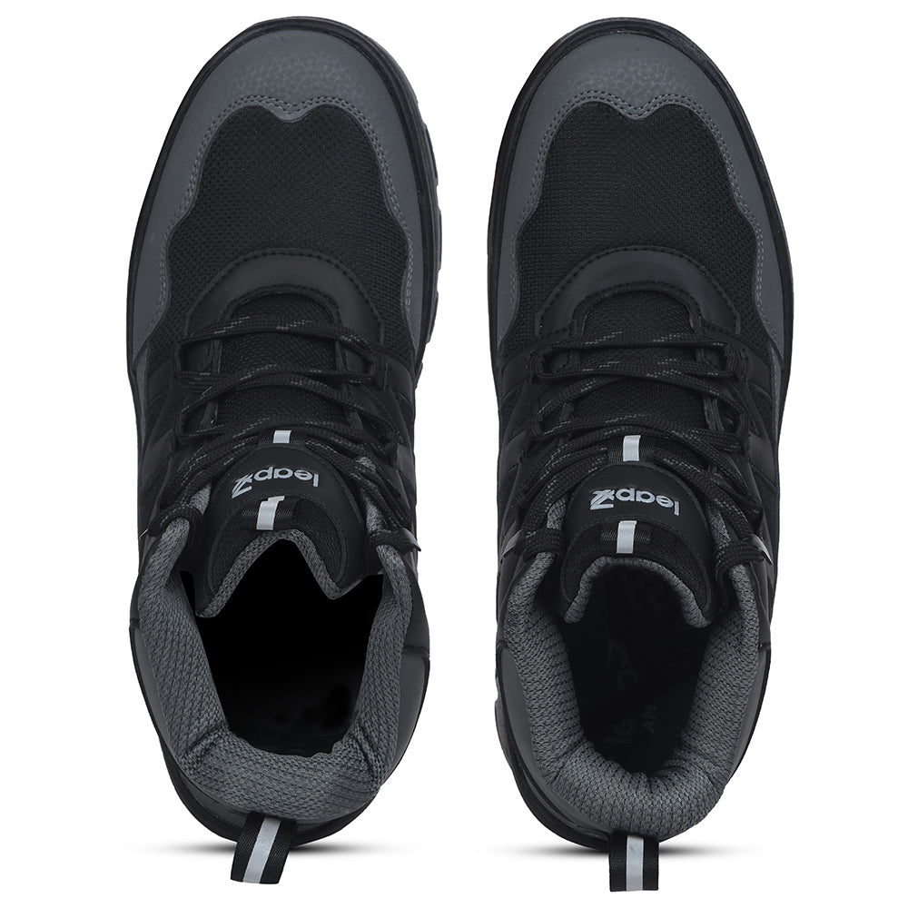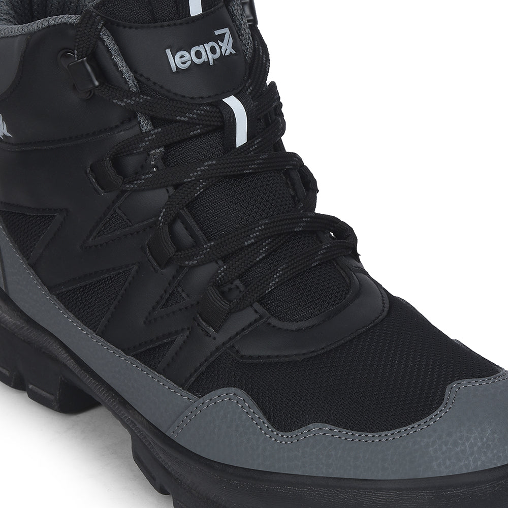Leap7x Black Sports Lace-Up Trekking Shoes For Men DRAWNER-1E By Liberty