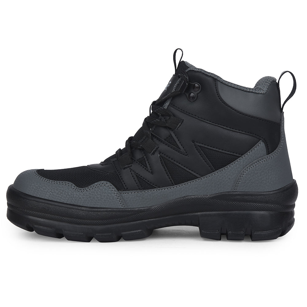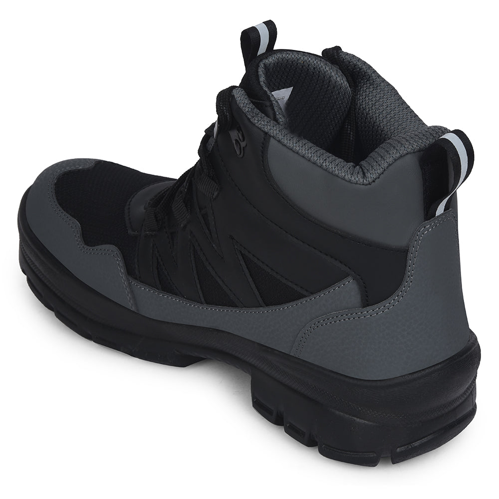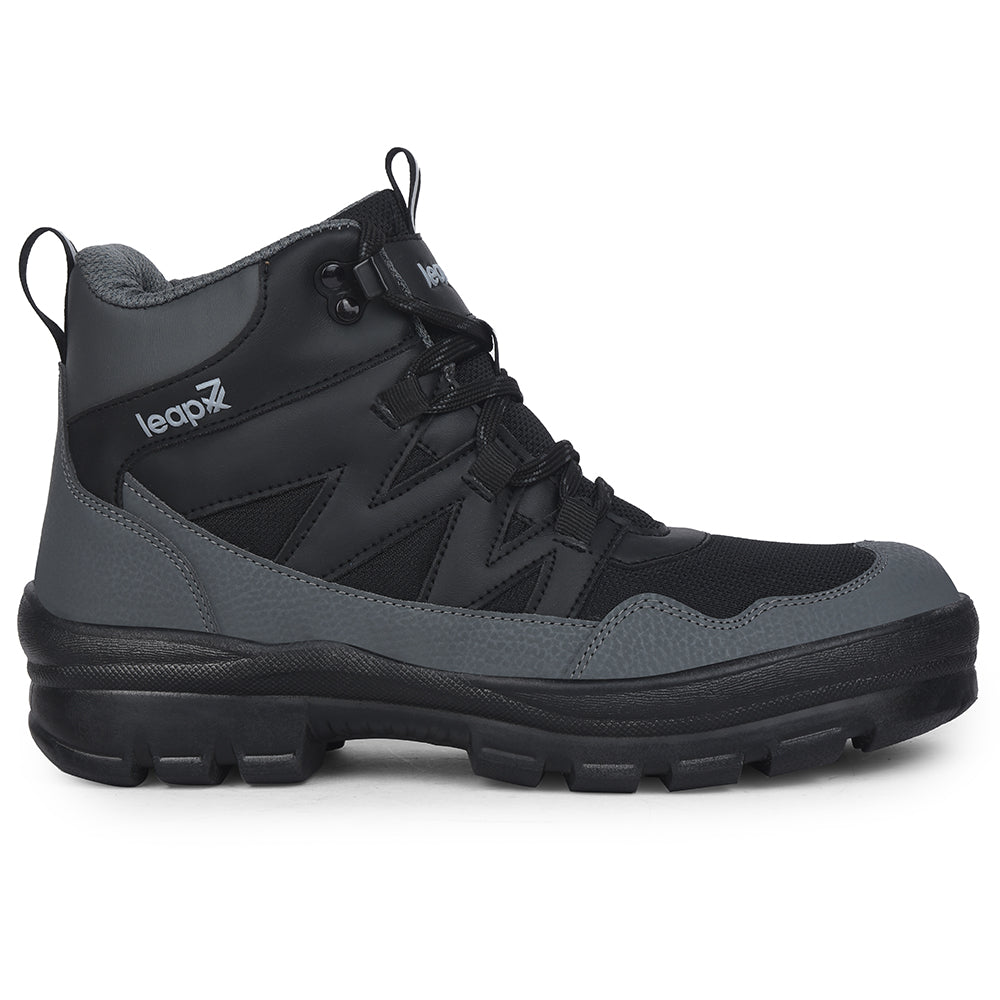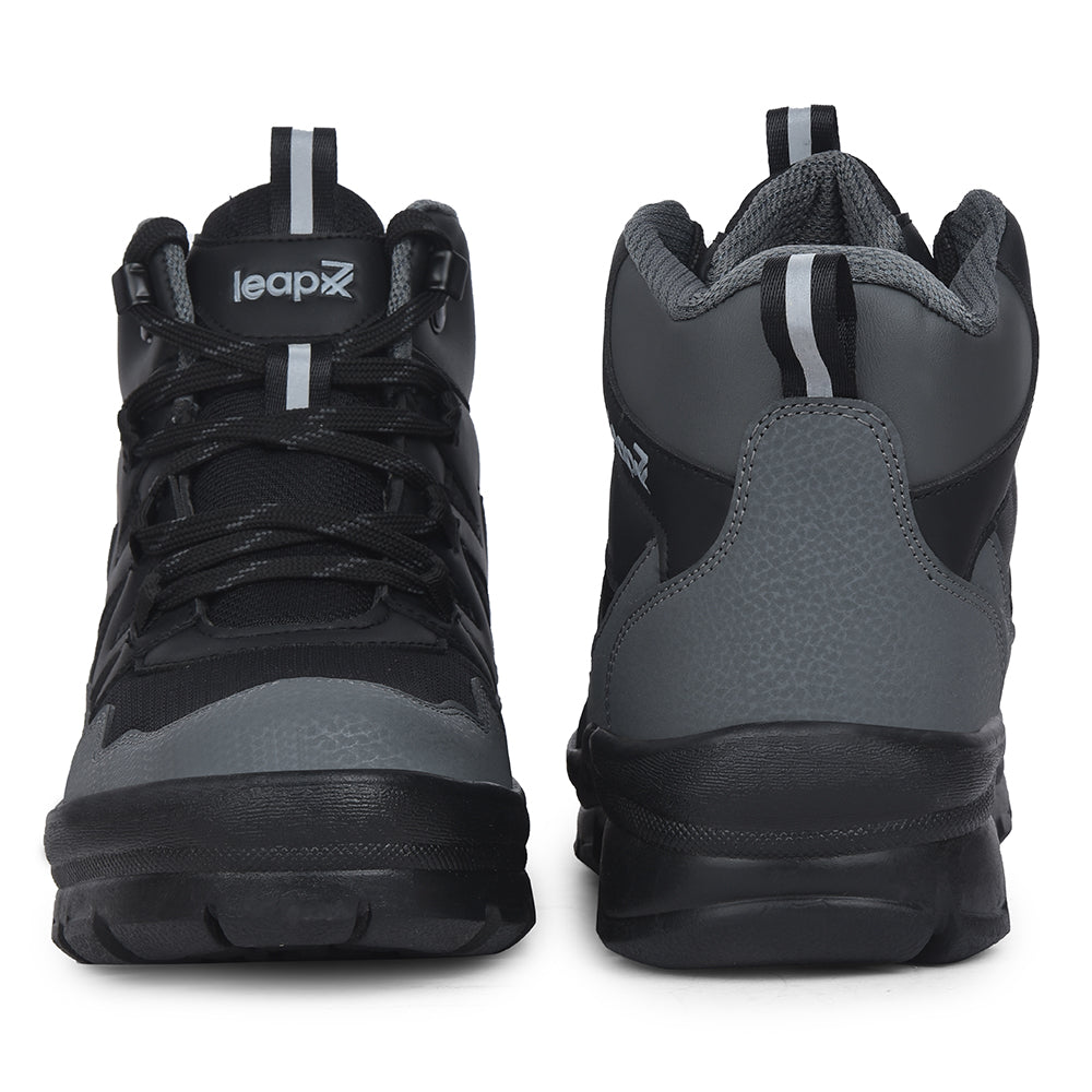 Leap7x Black Sports Lace-Up Trekking Shoes For Men DRAWNER-1E By Liberty