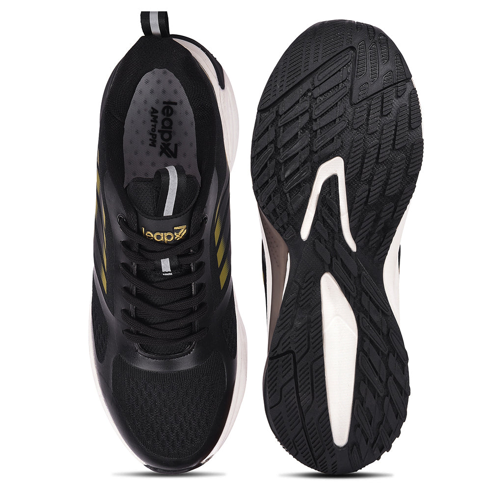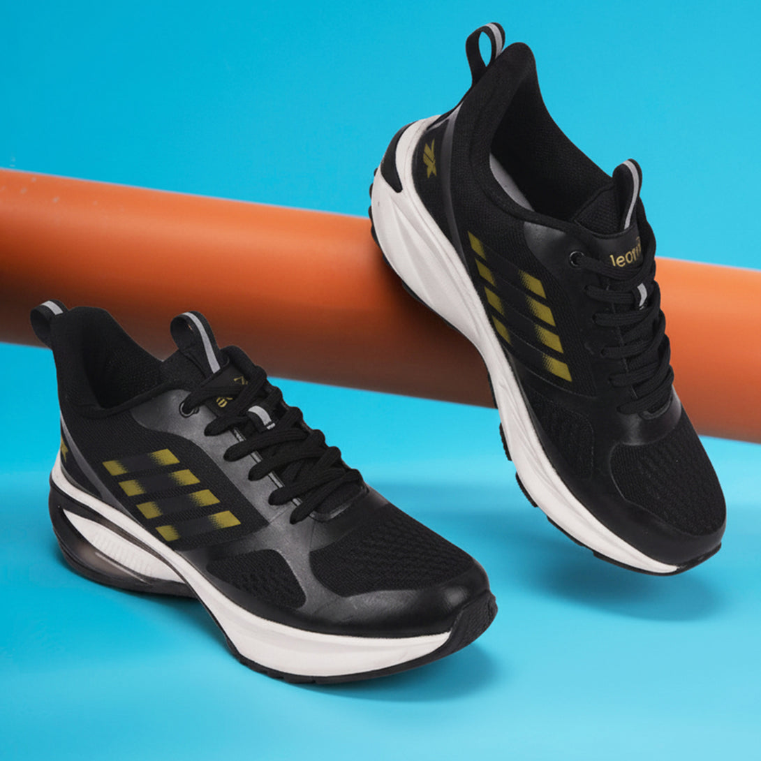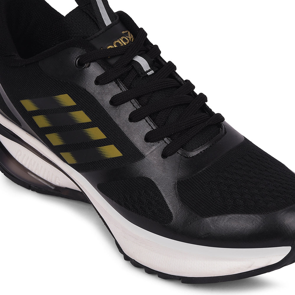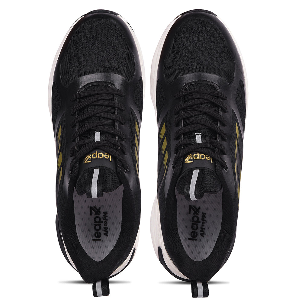 Leap7x Black Sports Lacing Running Shoes For Men RUNNY-1E By Liberty