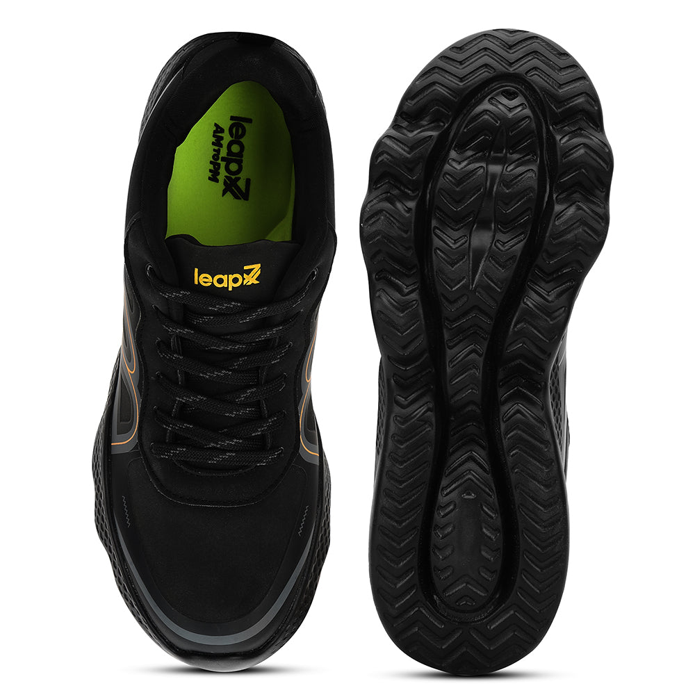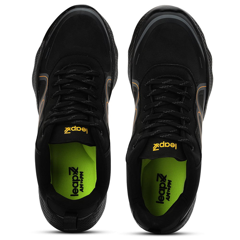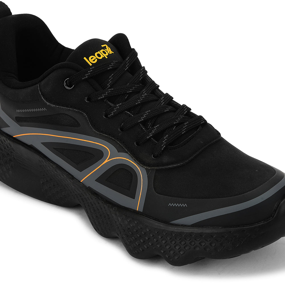 Leap7x Black Sports Lacing Running Shoes For Men WATSON-1E By Liberty